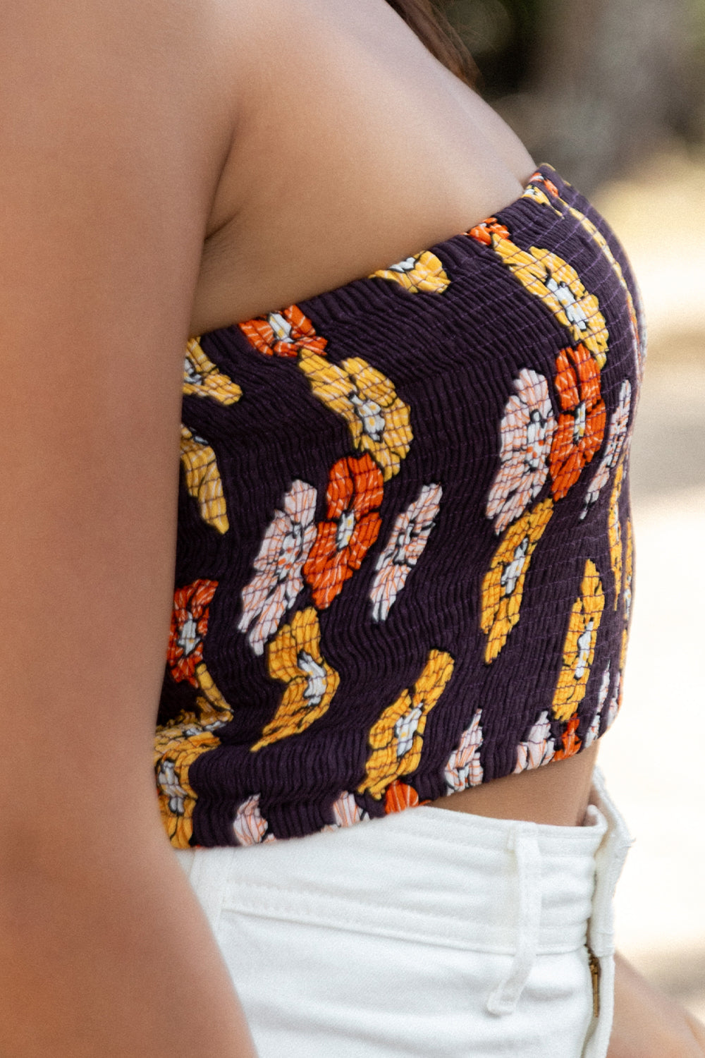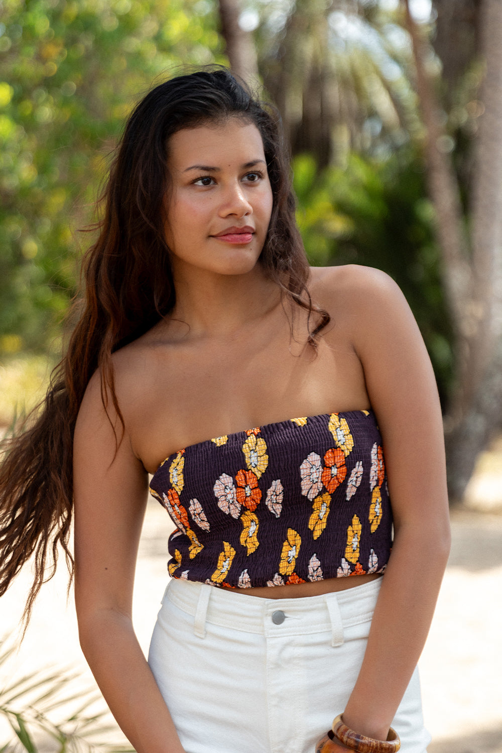 Soft, lightweight, and luxurious. A cropped strapless style top with smocking all around. This fabric is woven with a unique technique that enhances breathability, keeping it cool and ideal for the summer months!