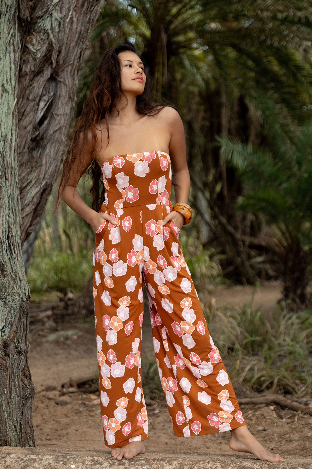 A staple that every closet needs. This is a full length jumper with wide leg pants, a fitted strapless bodice, and with pockets of course!