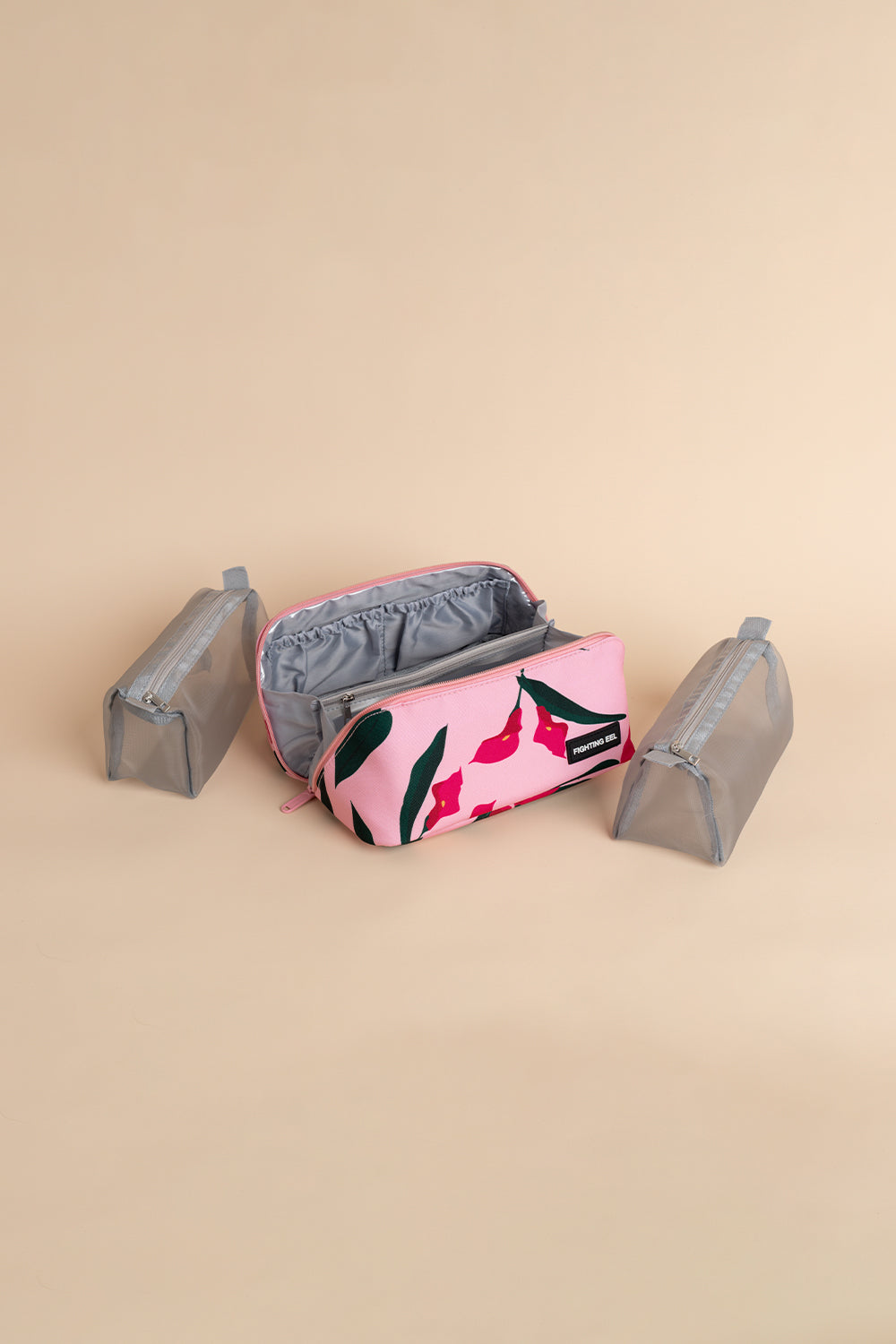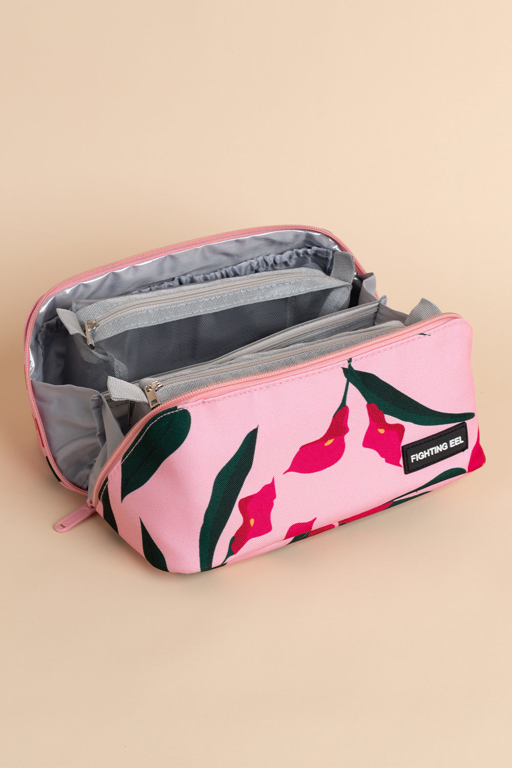 Our Fighting Eel Makeup Bag features a large capacity storage that’s perfect for traveling or keeping your cosmetics all in one place. The unique diagonal zipper design allows you to open the bag and lay flat to easily access all your cosmetics and accessories.
