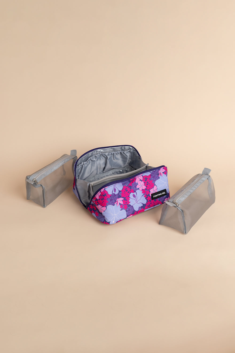 Our Fighting Eel Makeup Bag features a large capacity storage that’s perfect for traveling or keeping your cosmetics all in one place. The unique diagonal zipper design allows you to open the bag and lay flat to easily access all your cosmetics and accessories.