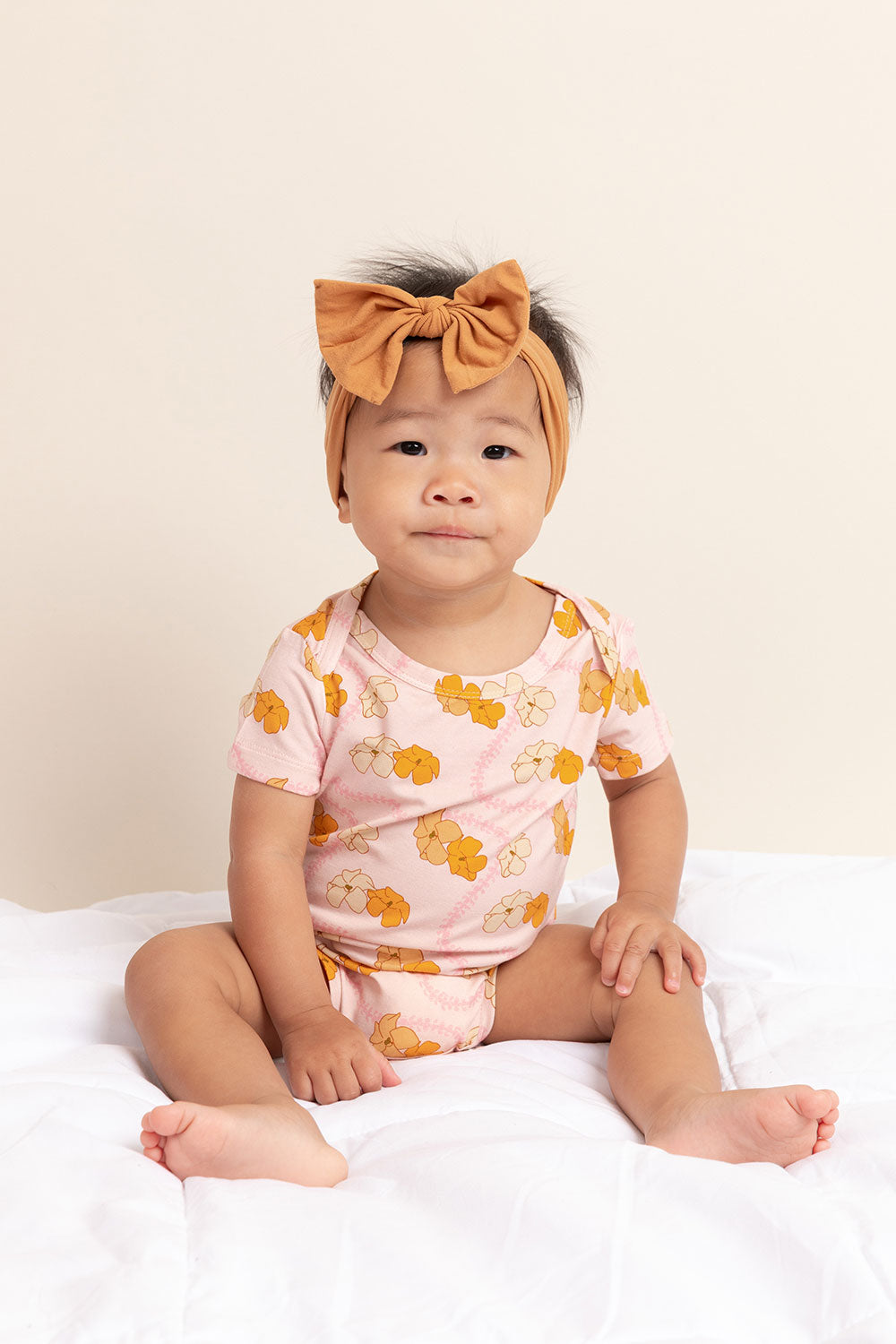 Onesies that are made for sleep, play, and everyday. Featured in short sleeve and is made with a blend of bamboo and spandex, making it oh so comfortable against your baby's skin.