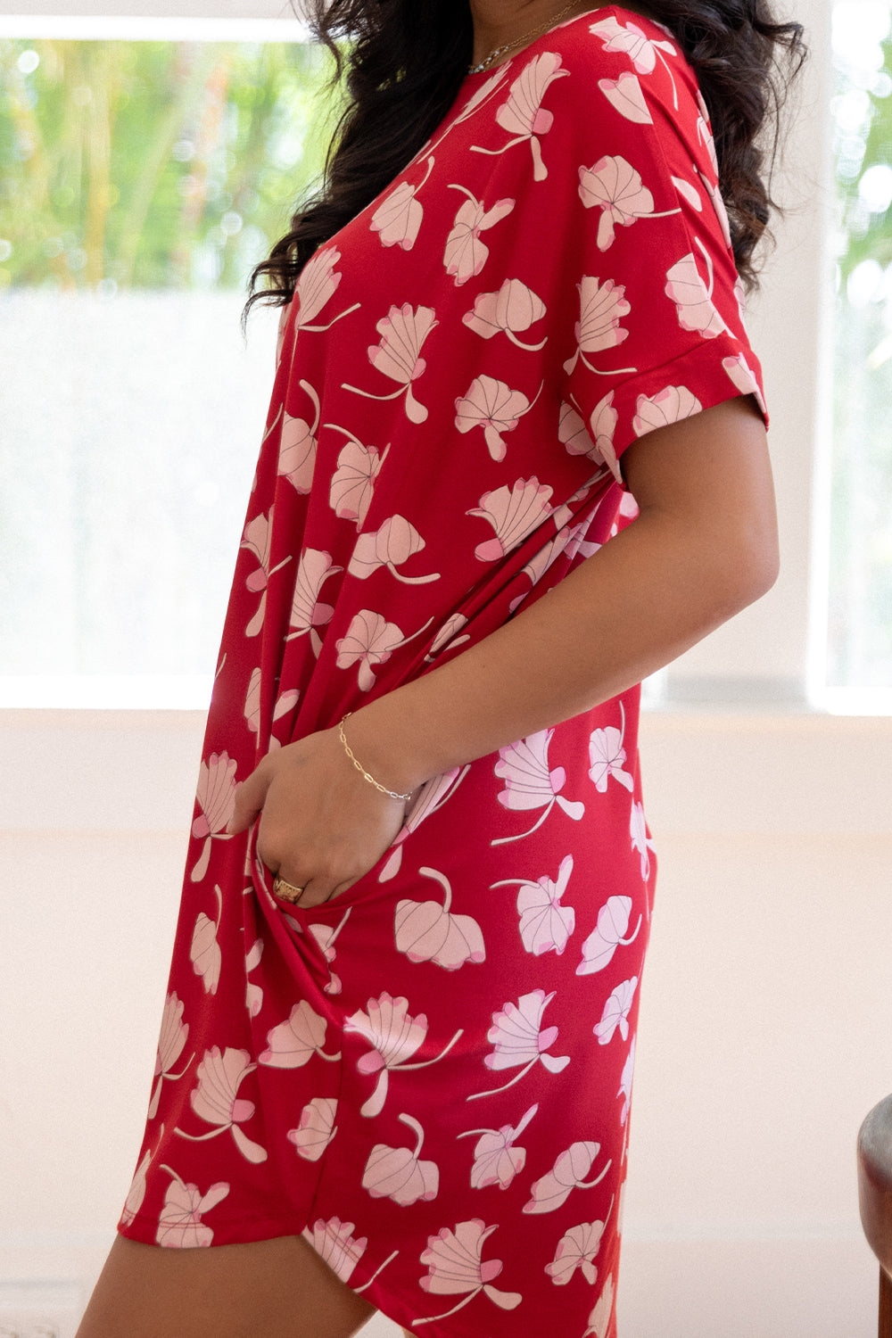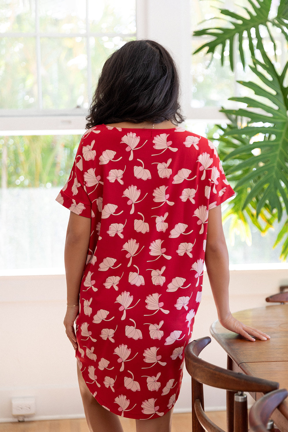 Our best-selling top reimagined as a dress—Dress Momo features a relaxed fit, cuffed sleeves, and a flattering curved hem for effortless, everyday style.