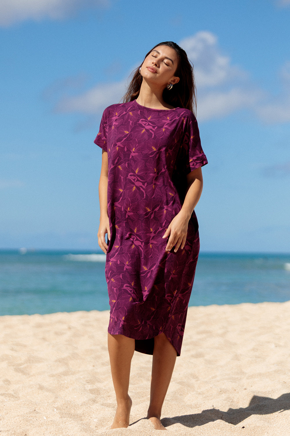 Infamous Top Momo made into a dress! This midi length version features cuffed sleeves and a curved hem.