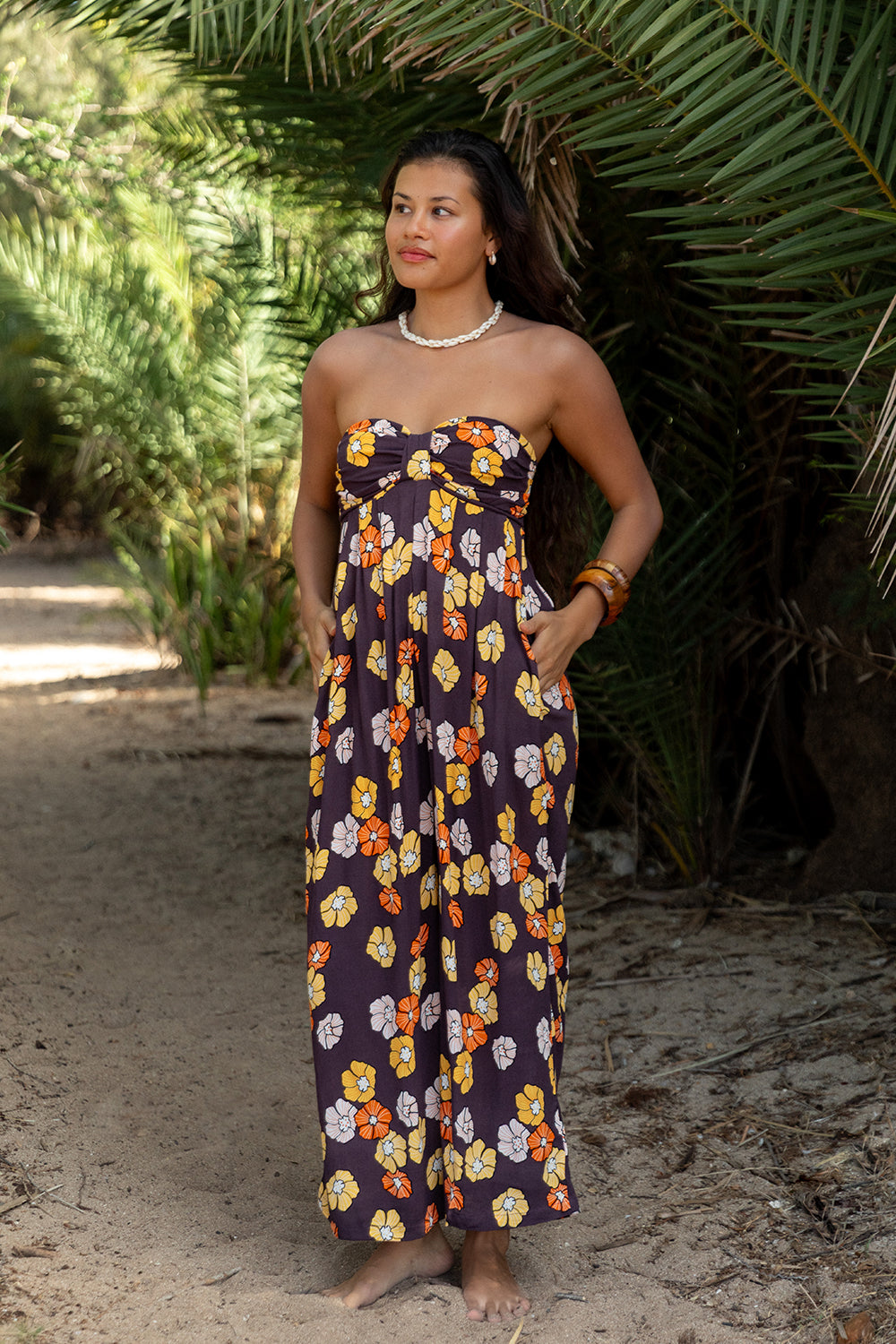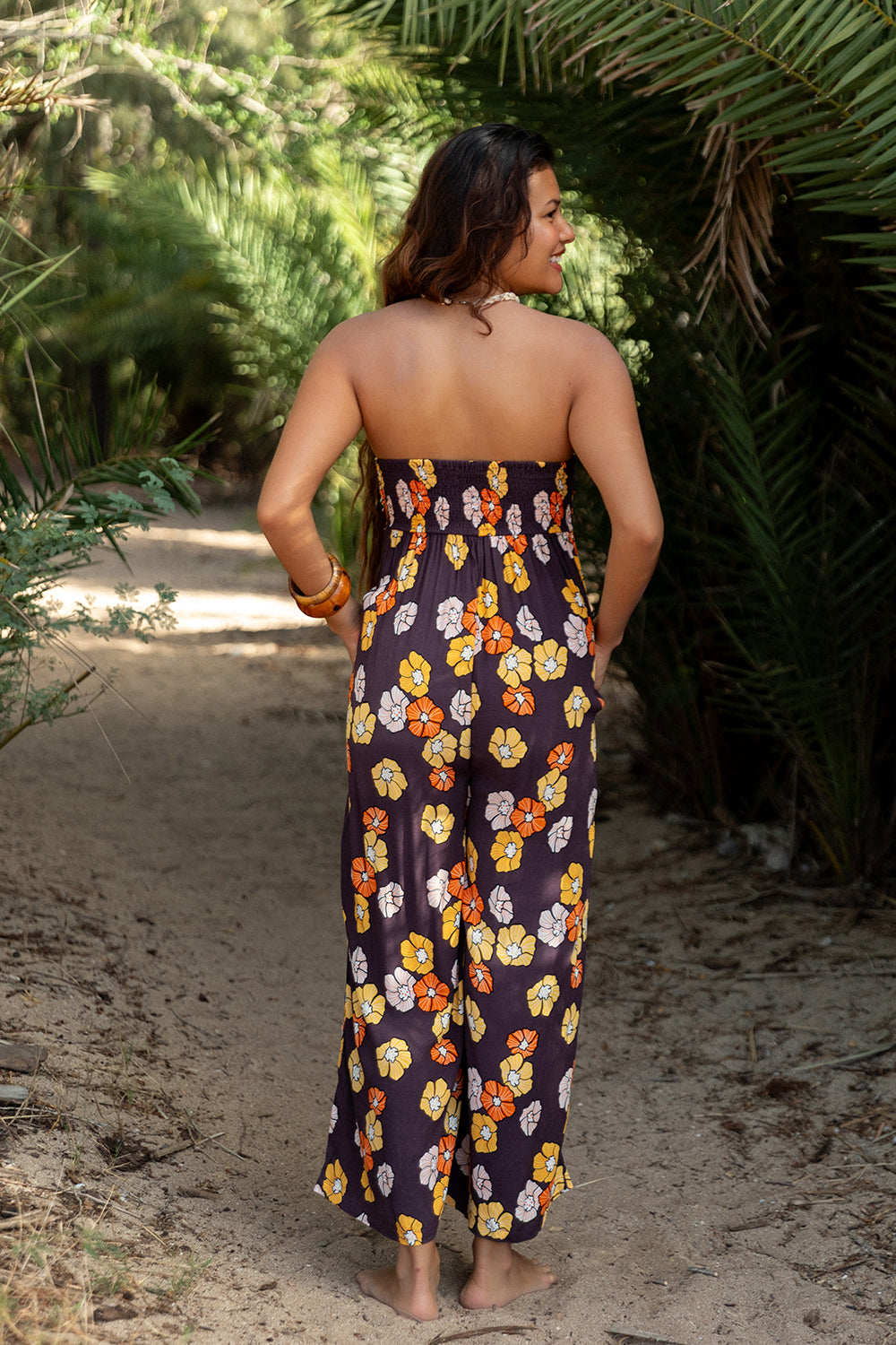 A strapless jumper that features sweetheart neckline, and cropped wide leg pants. This one is was made for any occasion.
