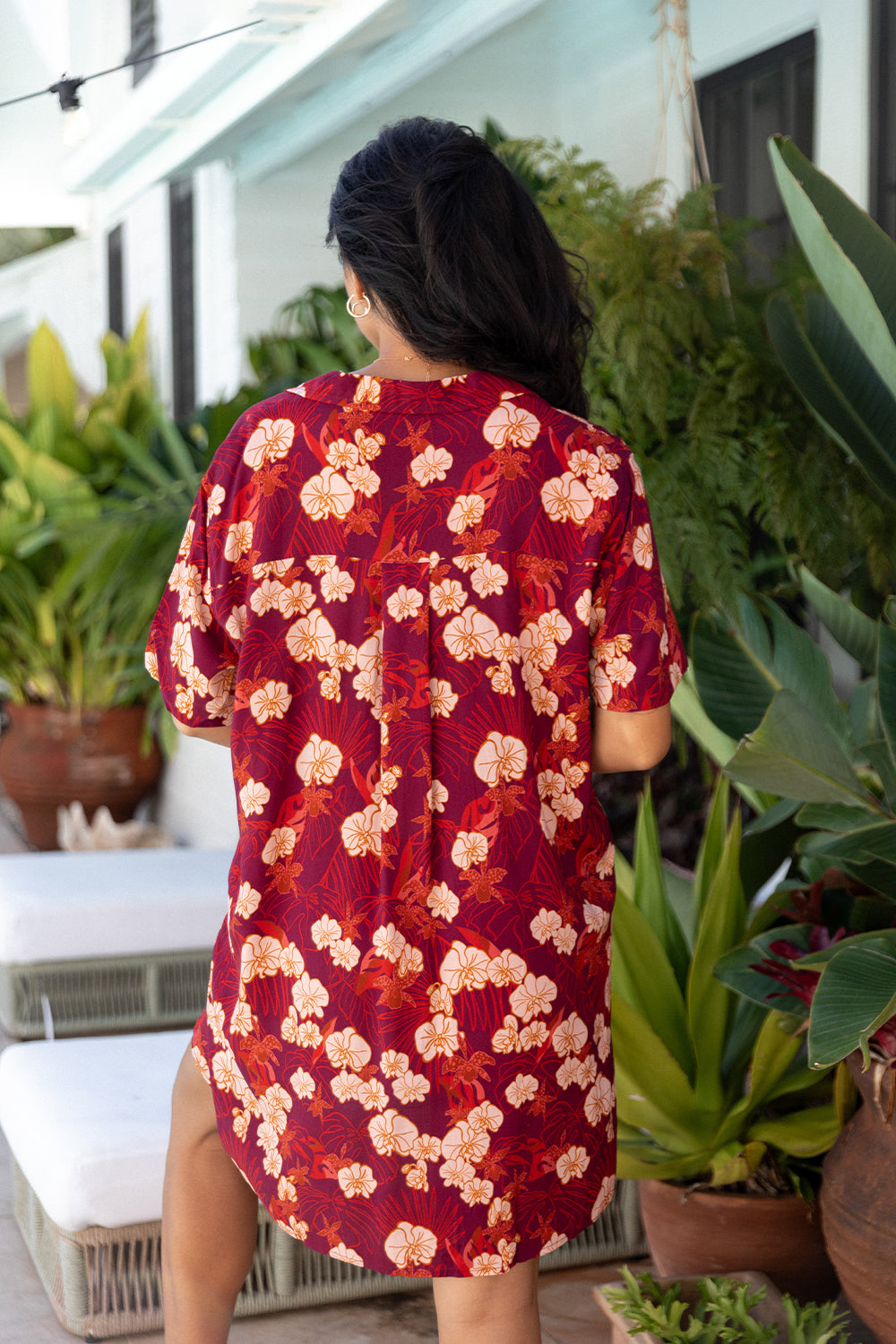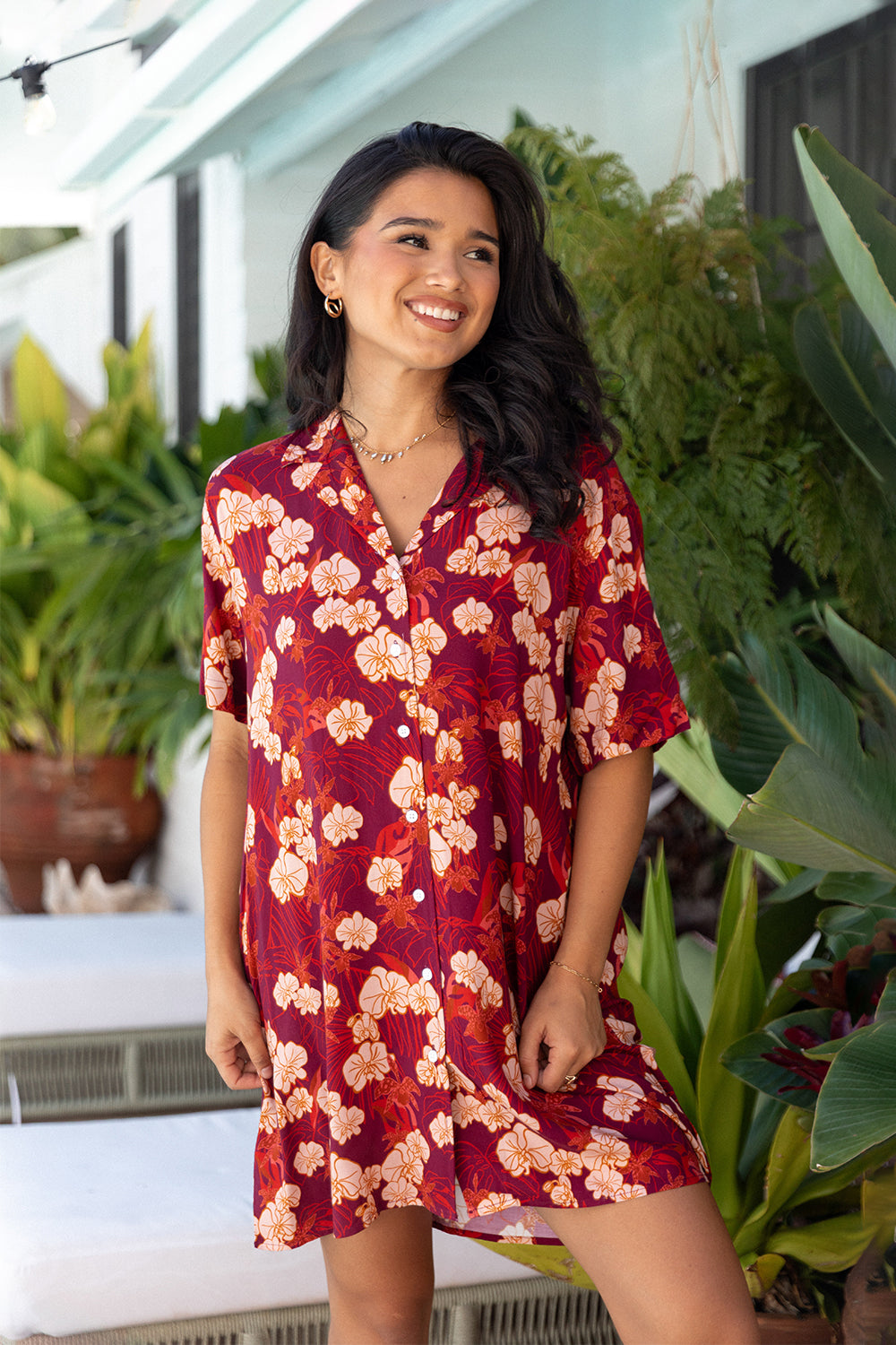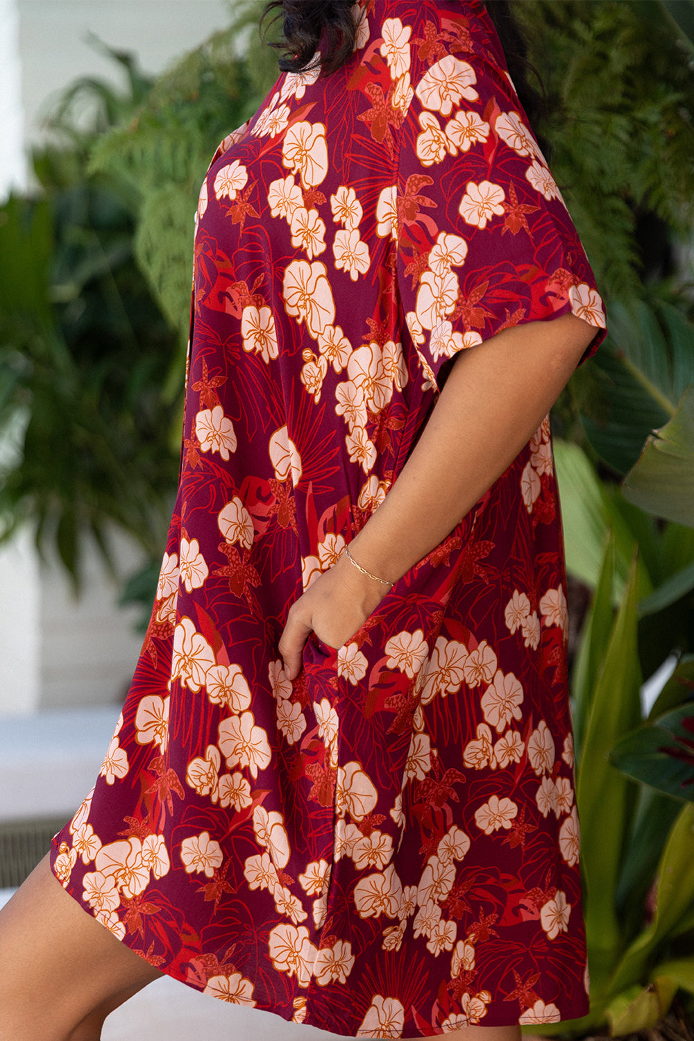 Short sleeves, short button-down dress with lapel collar. Has Pockets.