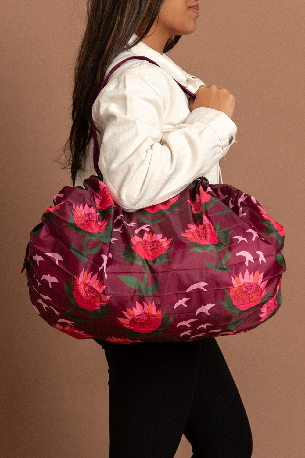 Our reusable, foldable bag opens up to a generous carry‑all, then folds flat and rolls into a slim tube for effortless storage between adventures.