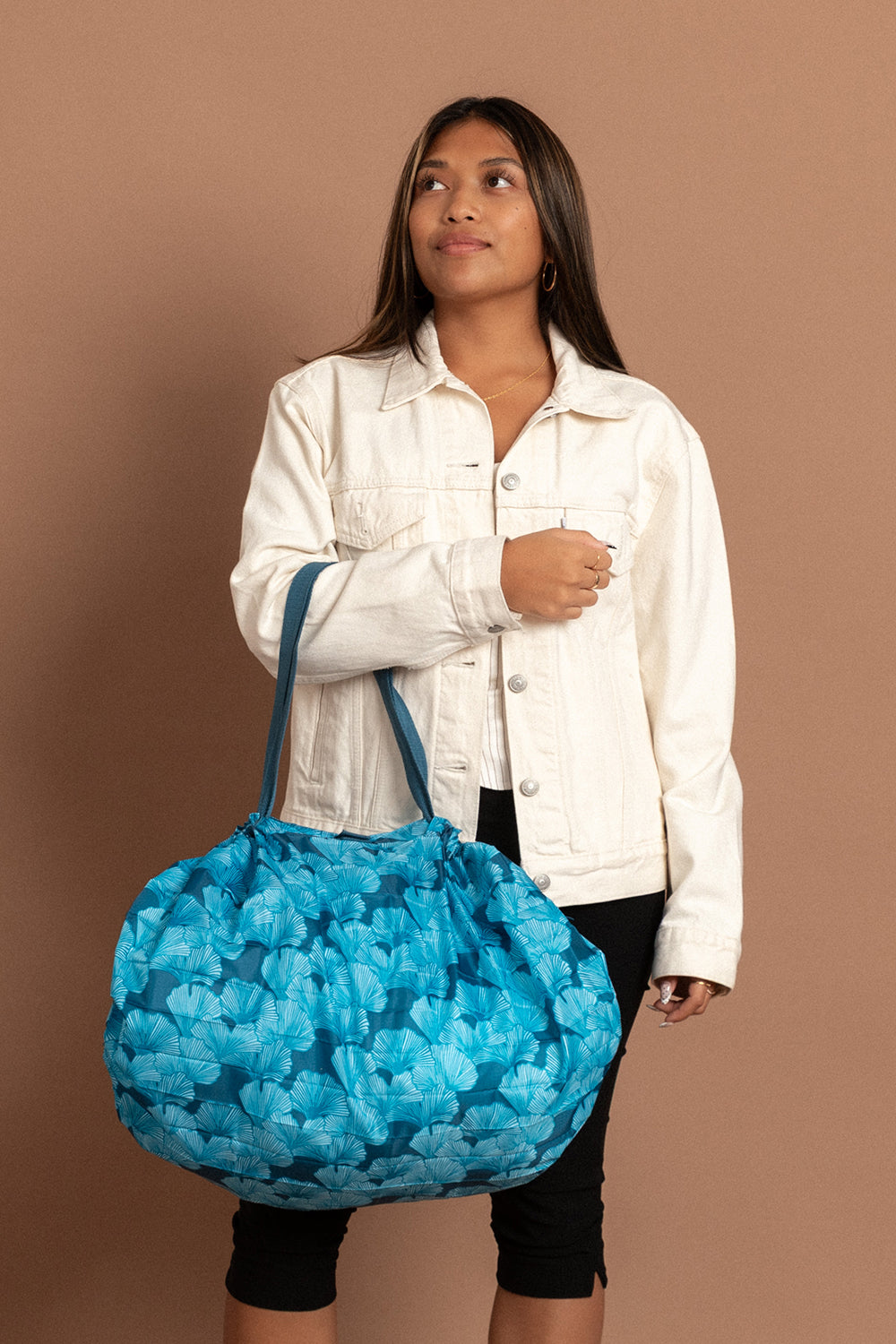 Our reusable, foldable bag opens up to a generous carry‑all, then folds flat and rolls into a slim tube for effortless storage between adventures.