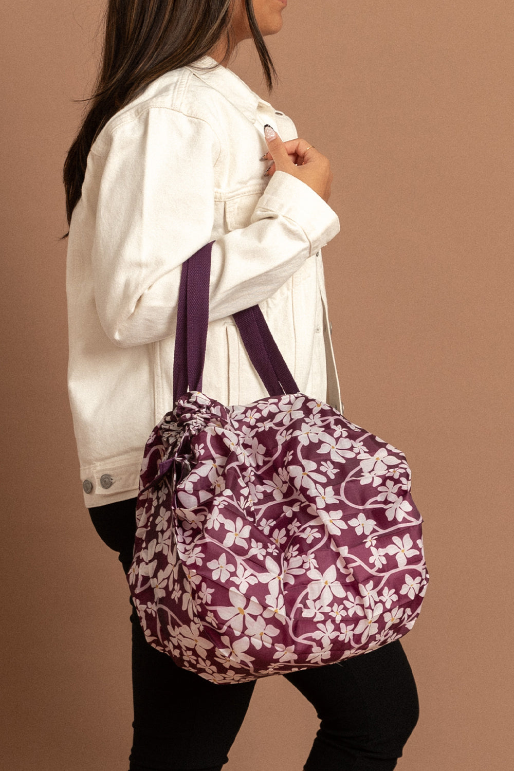 Our reusable, foldable bag opens up to a generous carry‑all, then folds flat and rolls into a slim tube for effortless storage between adventures.