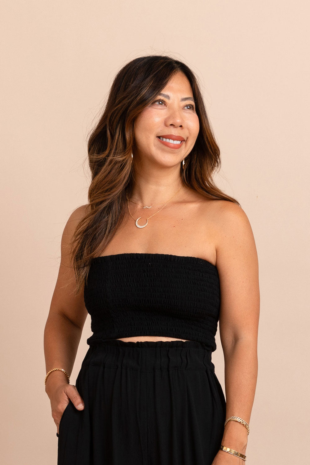 Soft, lightweight, and luxurious. A cropped strapless style top with smocking all around. This fabric is woven with a unique technique that enhances breathability, keeping it cool and ideal for the summer months!