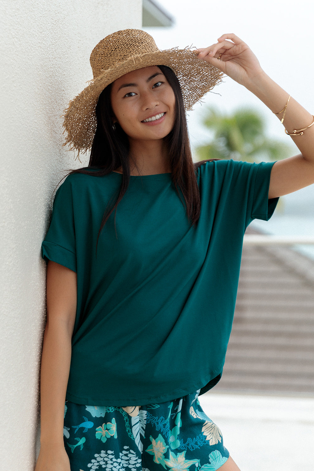 Our most popular top you can never have enough of. Top Momo features a boxy fit with cuff sleeves and a curved hem.