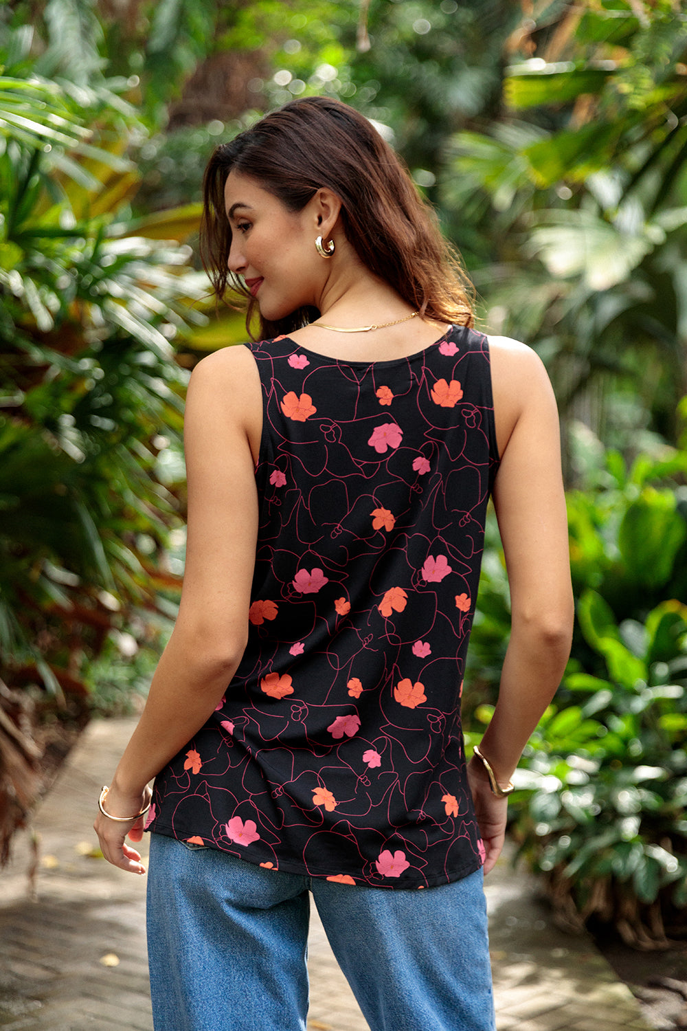 Tank Kai is a comfortable jersey tank top with a rounded scoop neck and a relaxed fit, featuring side slits for movement.