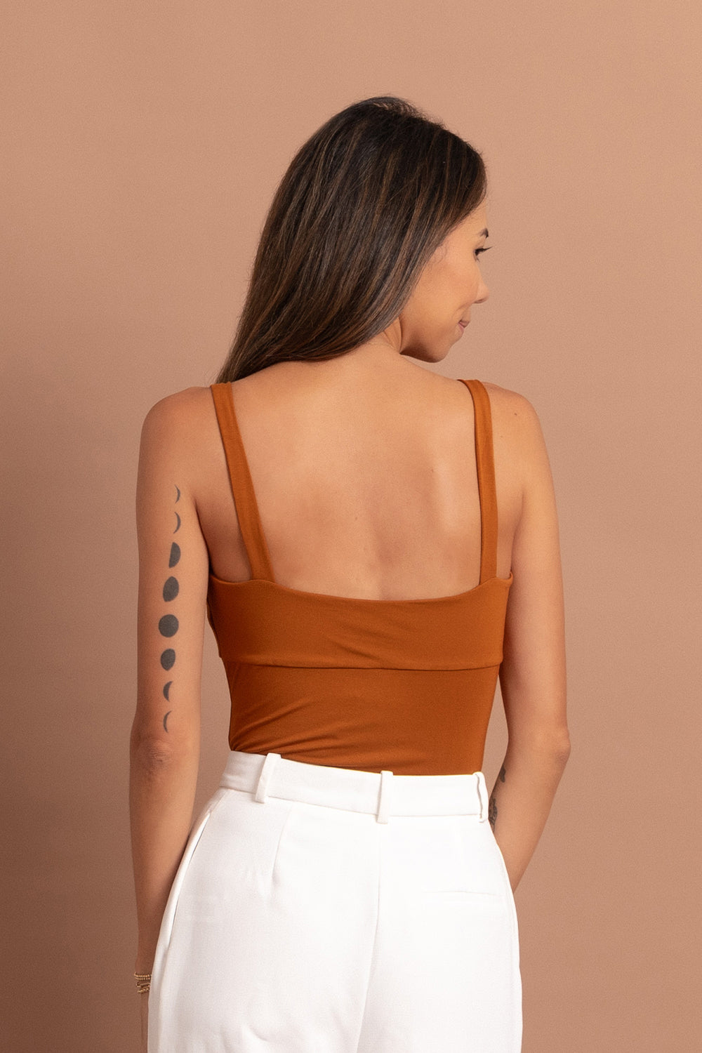 Sleeveless bodysuit with a low cut scoop neckline with a thong cut