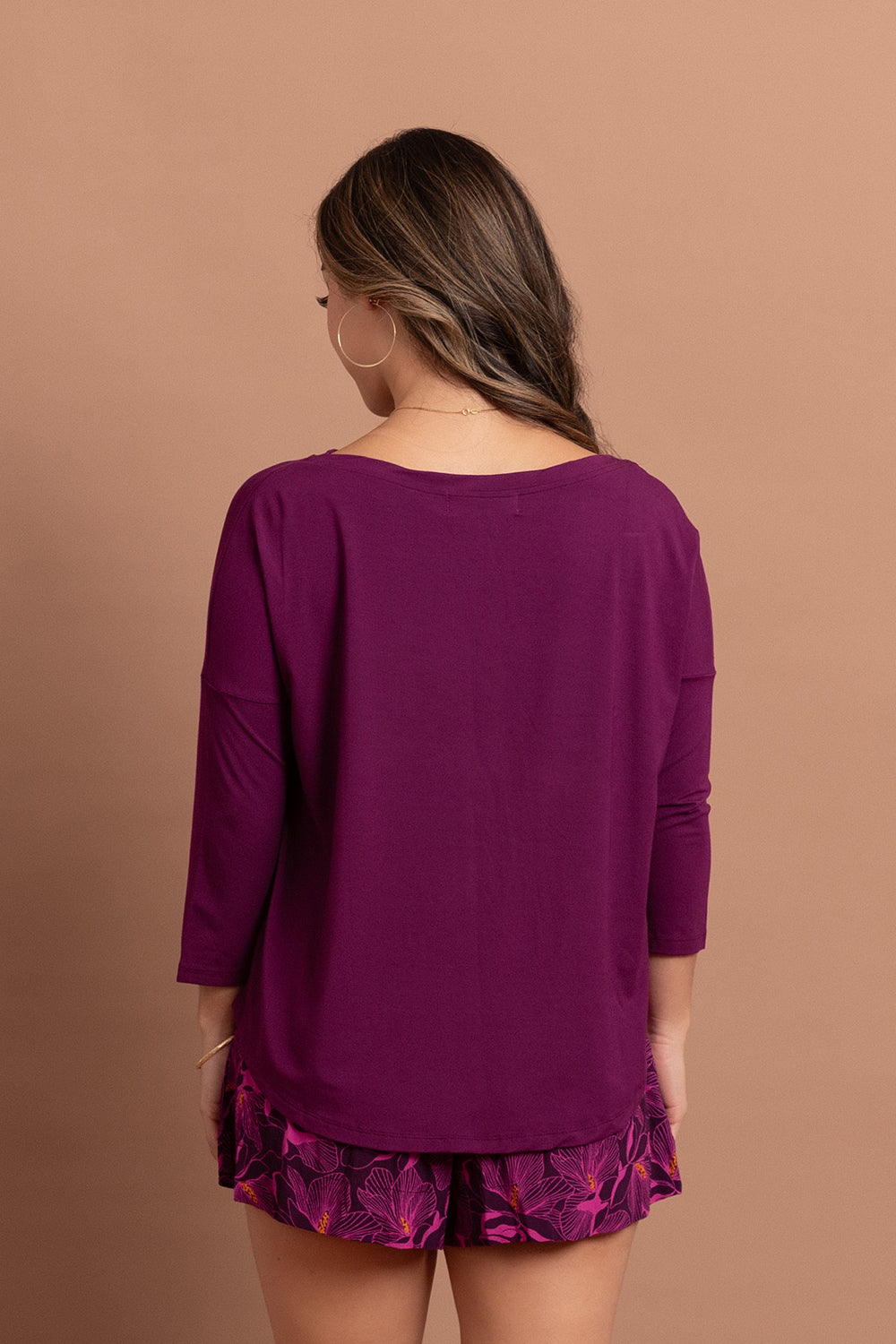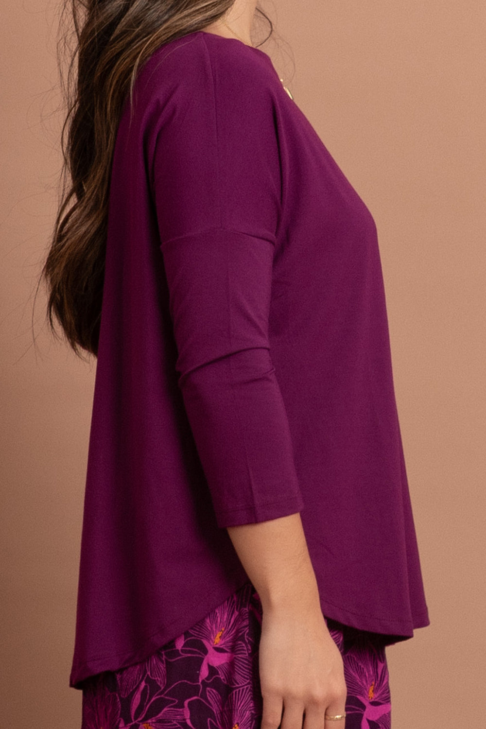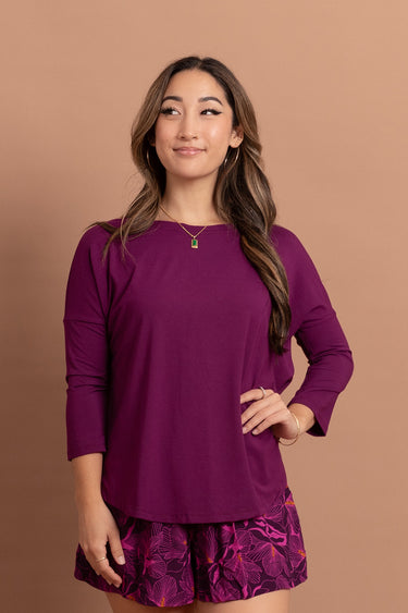 An easy to wear 3/4 sleeve top featuring a classic boat neckline.