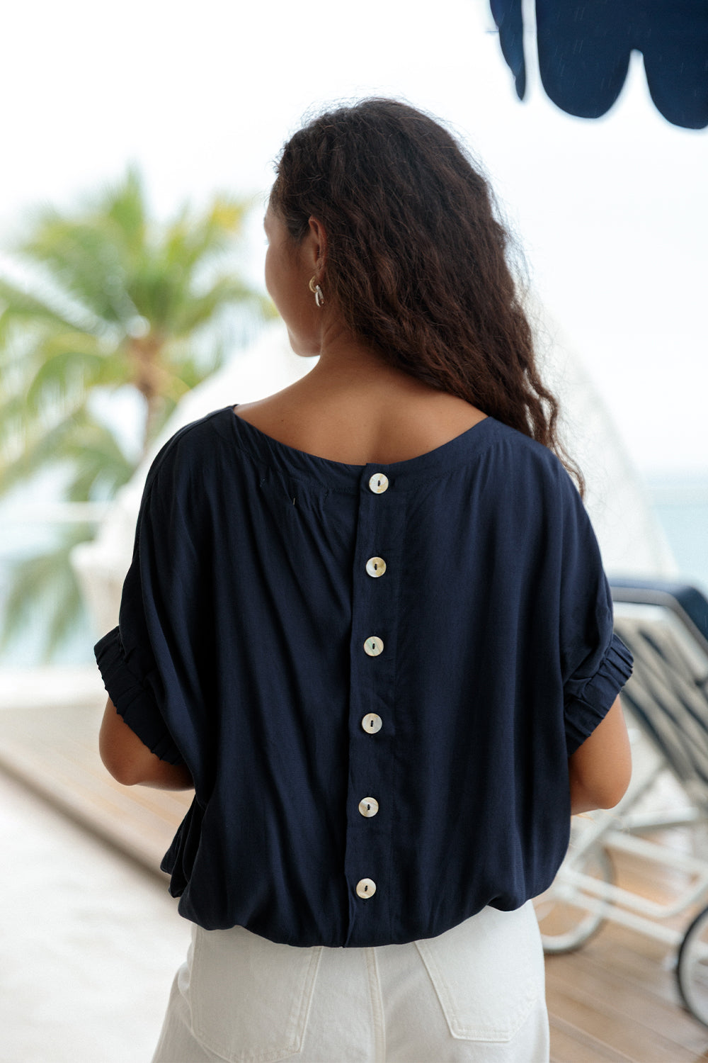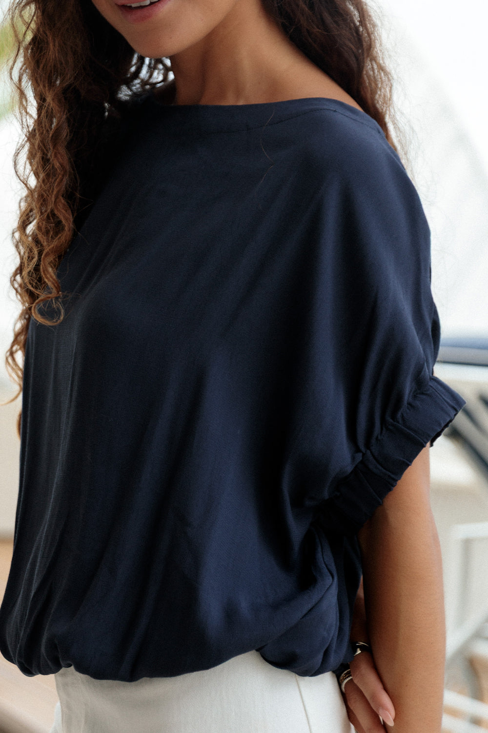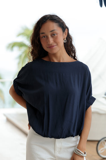 Featuring a boatneck neckline and button detail at the back for a hint of sophistication, Top Milano also boasts elastic cuff details at the sleeves and elastic at the waist to create a flattering, blousy effect.