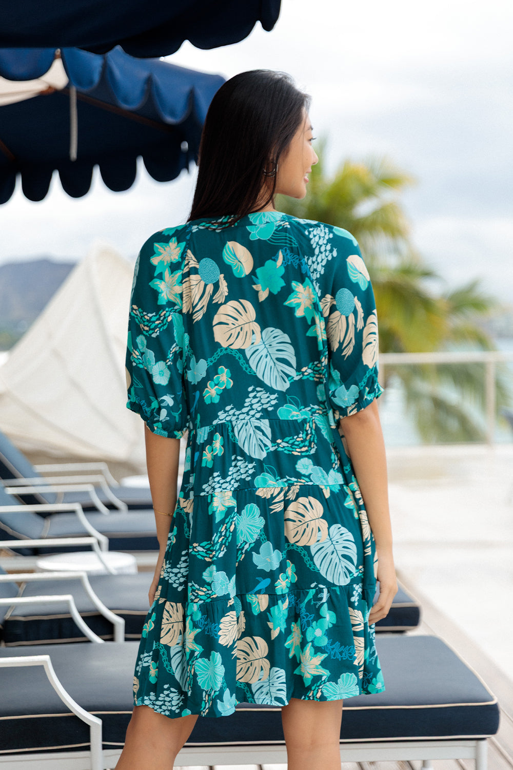 Fun and flirty dress Sofina is a tiered style dress with a v-neckline and 1/2 puff sleeves.