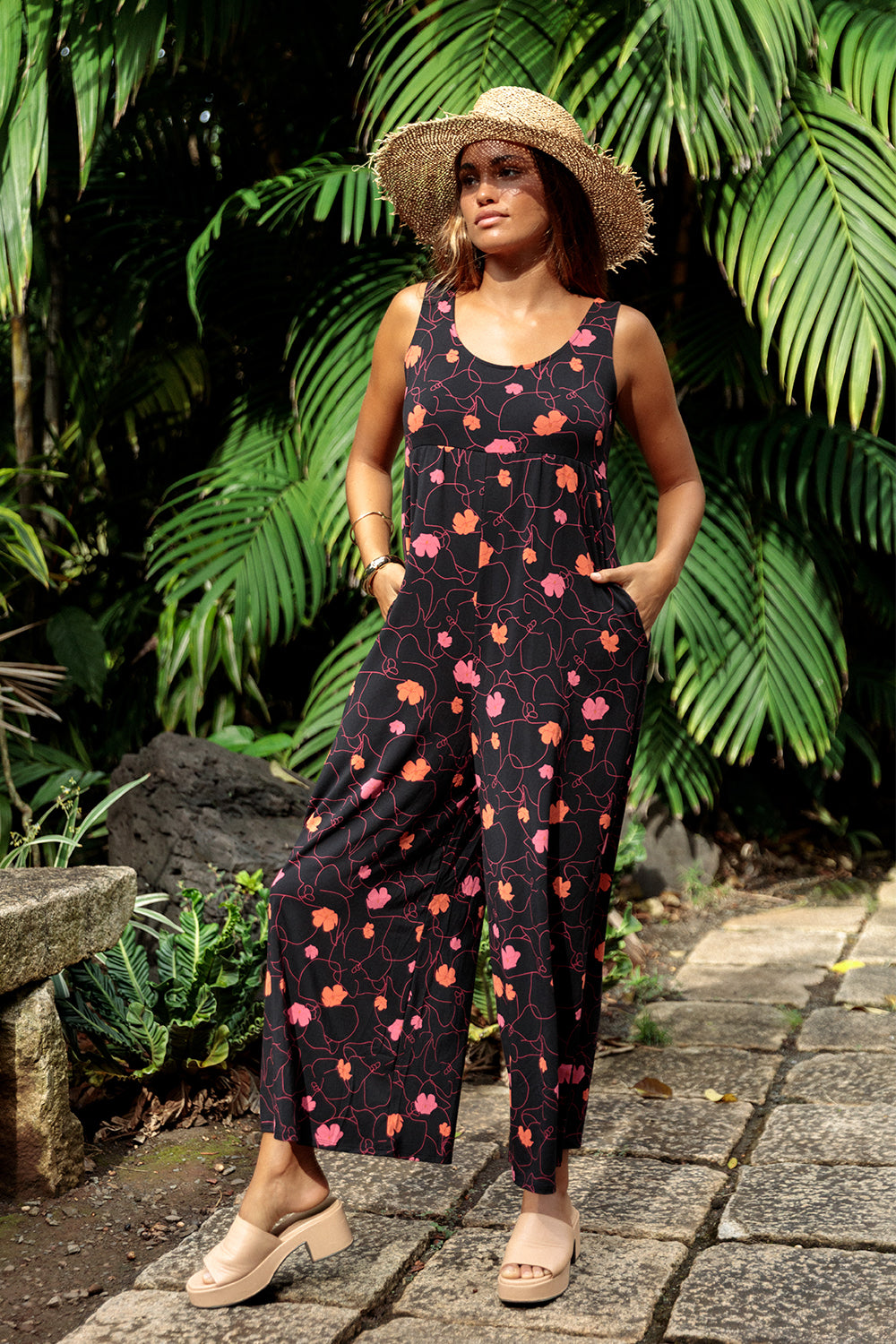 Longer version of Romper Denali is a sleeveless babydoll style jumper.