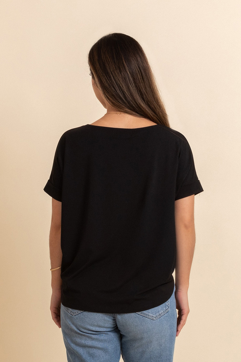 Our most popular top you can never have enough of. Top Momo features a boxy fit with cuff sleeves and a curved hem.
