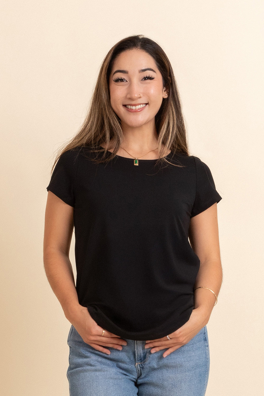 The ultimate classic! This a-line style top has clean lines and a flattering slim fit.