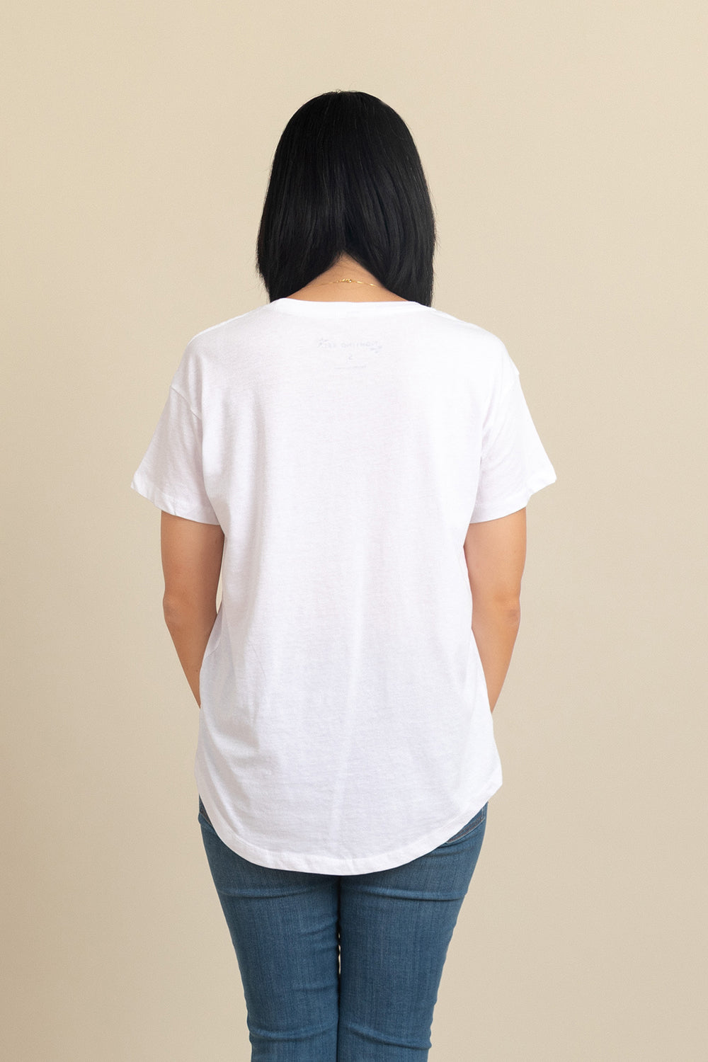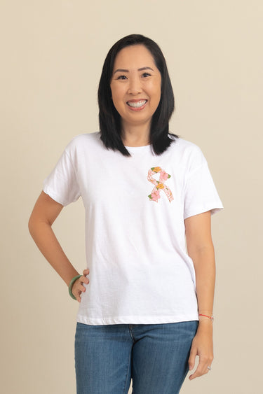 FE x KMC Hi Low Tee - White Retro Bloom Ribbon