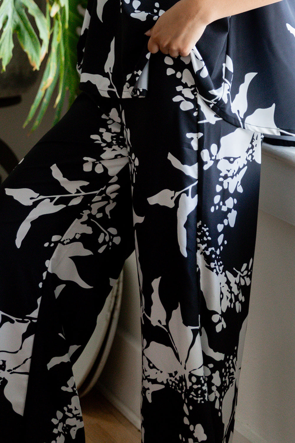 Pant Thea - Black Poinsettia Roma