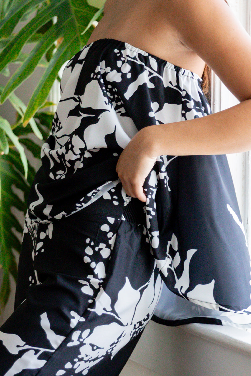Top Hana is a flowy tube top with elastic around the neckline for a secure and comfortable fit. Perfect for warm days or layered under a jacket, it’s a versatile piece that adds a touch of ease and style to any outfit.
