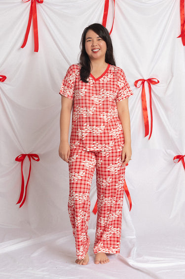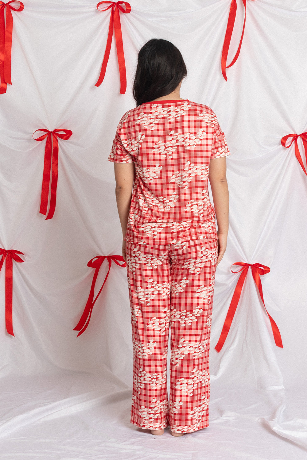 Drift into dreamland with our ultra-cozy Christmas Pajama Set. Crafted from a premium blend of soft, breathable bamboo and spandex, these PJs are designed to keep you cool and comfortable all night long. The top features a classic short-sleeve cut with a relaxed fit, while the pants offer a loose straight-leg style for added comfort.