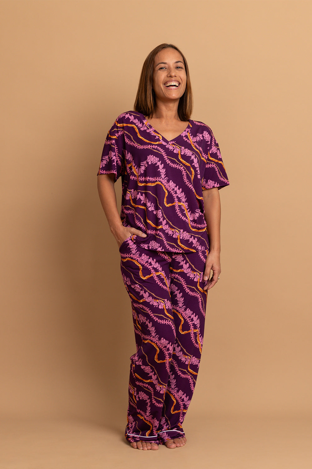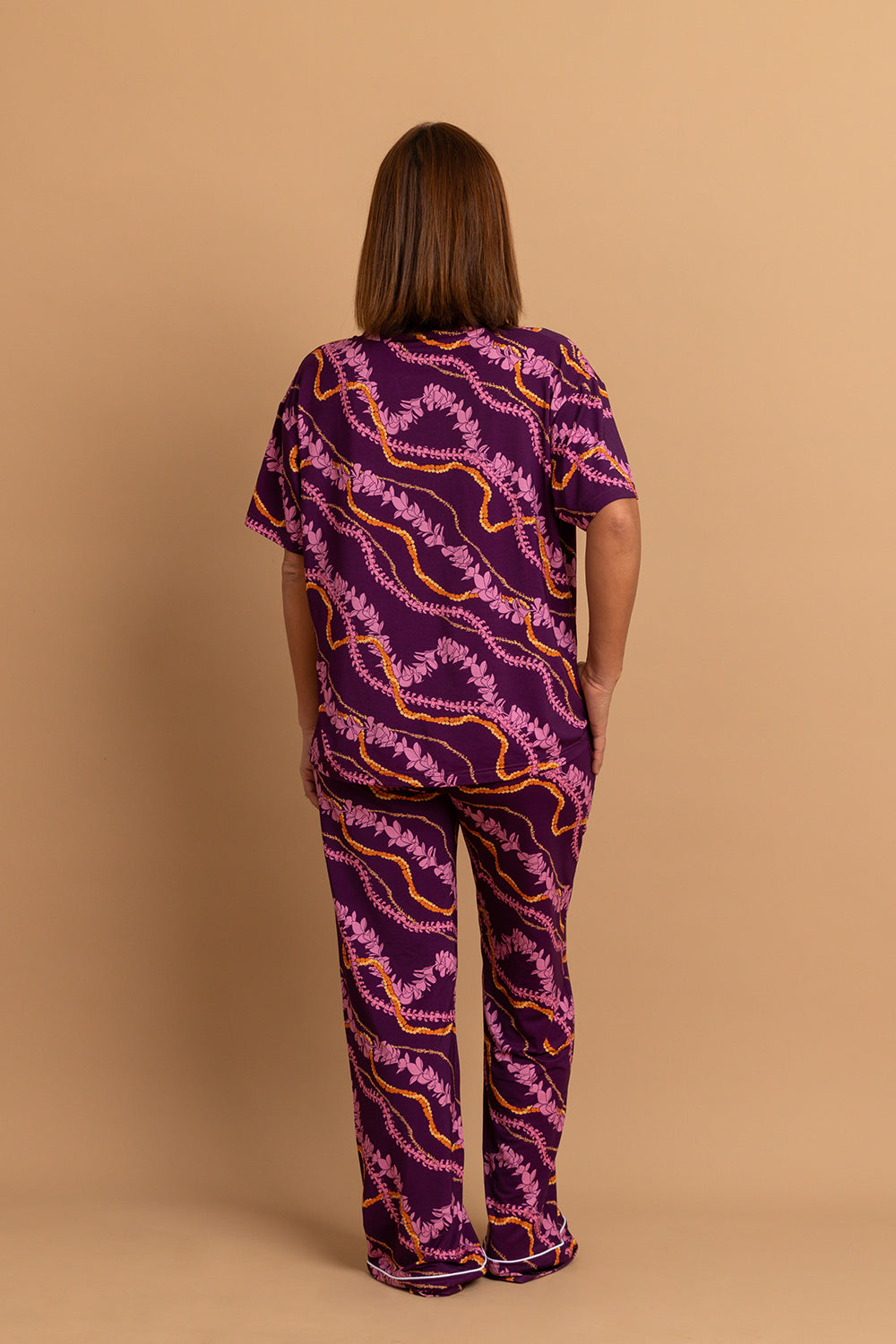 Embrace the softness of spring with our ultra-cozy Pajama Set, crafted from a breathable lyocell blend to keep you cool and comfy as the nights warm up. Featuring a relaxed short-sleeve top and wide-leg style pants, it's the perfect set for blooming into sweet dreams.